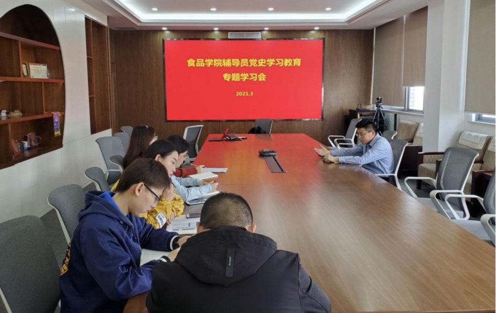 3月29日,澳门电子pg游戏官网副书记魏珍吉带领全院辅导员于食品楼925会议室开展党史学习会议。