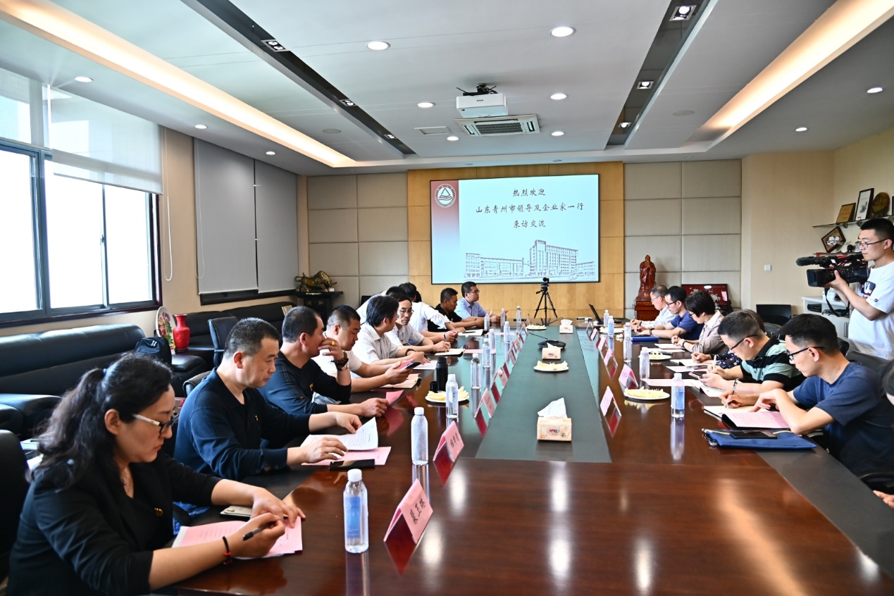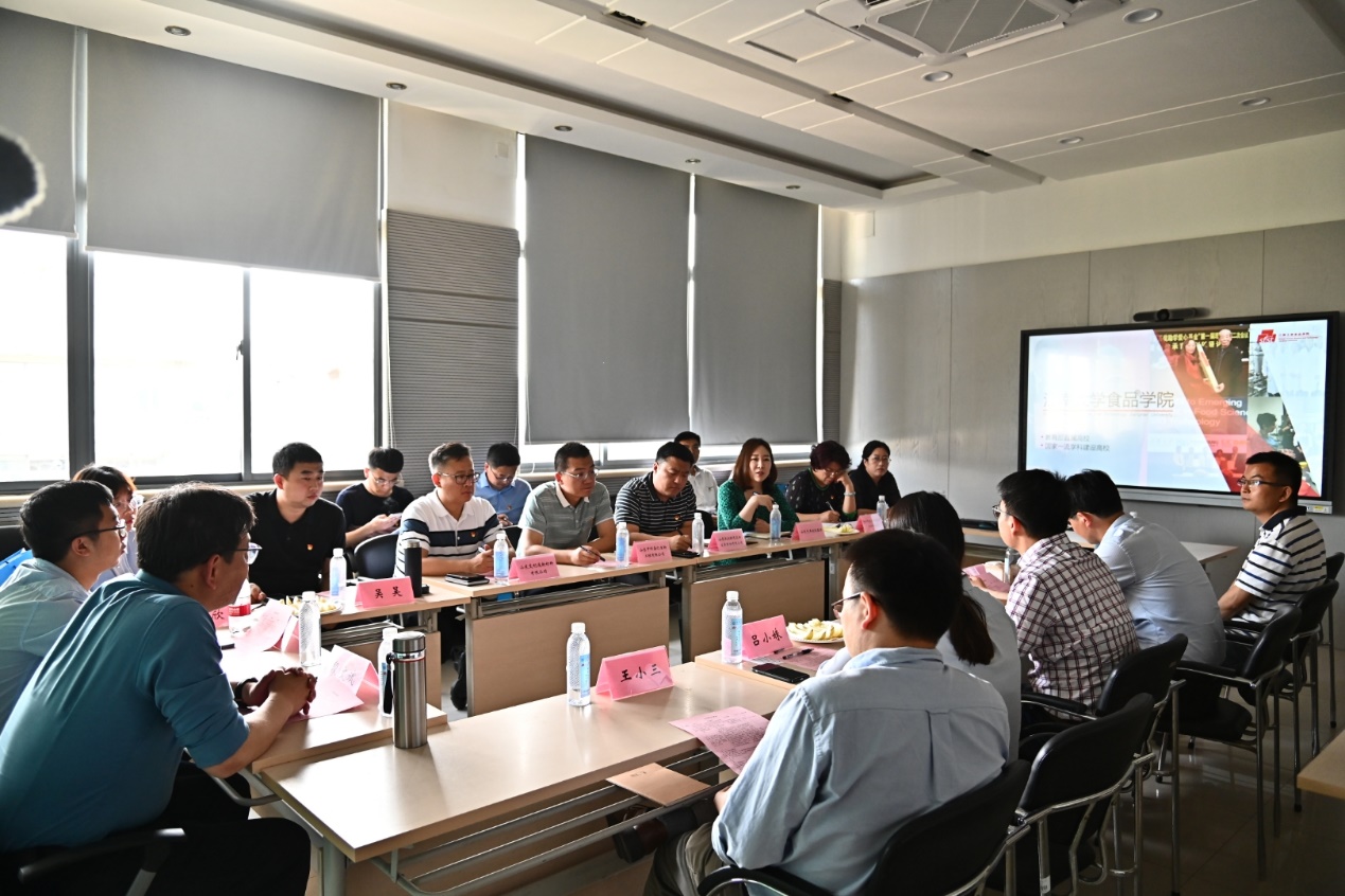 2021年5月10日,为创新服务推动企业发展、借助科技力量促进食品行业提档升级,山东青州市投促中心主任刘鑫携17家重点食品企业到访我院考察调研。澳门电子pg游戏官网刘元法院长、产业技术研究院赵伟副院长、澳门电子pg游戏官网党委副书记、副院长魏珍吉以及相关科研方向的老师参加了对接交流活动。