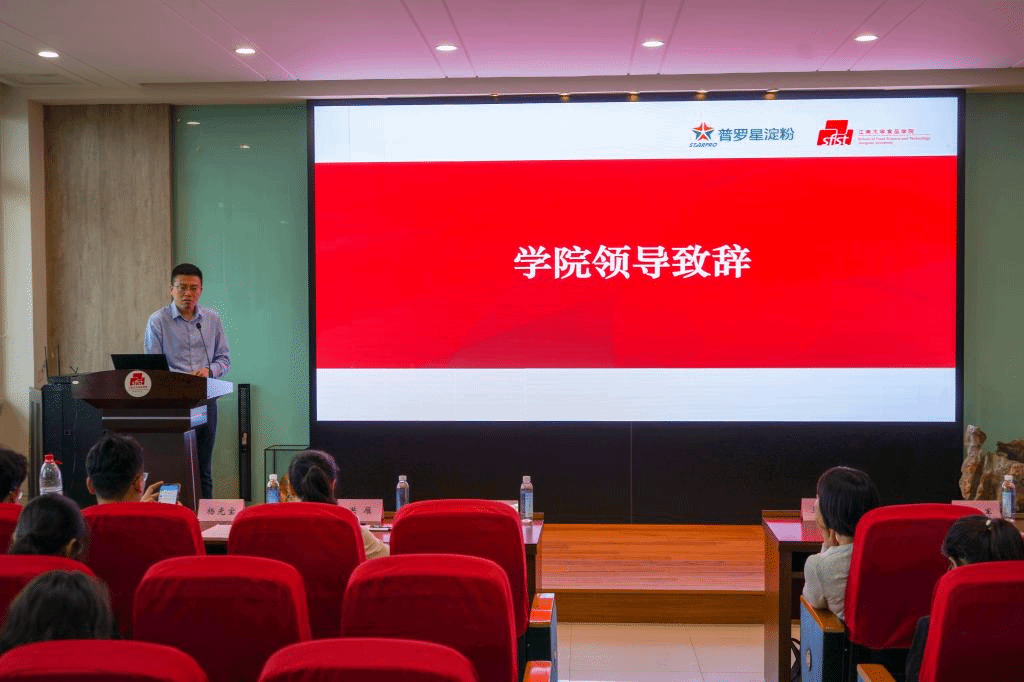5月26日下午,第四届普罗星淀粉奖学金颁奖典礼暨普罗星淀粉创意大赛宣讲会在食品楼D912会议室成功举行。杭州普罗星淀粉有限公司研发处处长王小芬,应用研发科科长曾令军,澳门电子pg游戏官网党委副书记、副院长魏珍吉,澳门电子pg游戏官网教授洪雁,辅导员杨光宝以及150余名学生参加了会议。