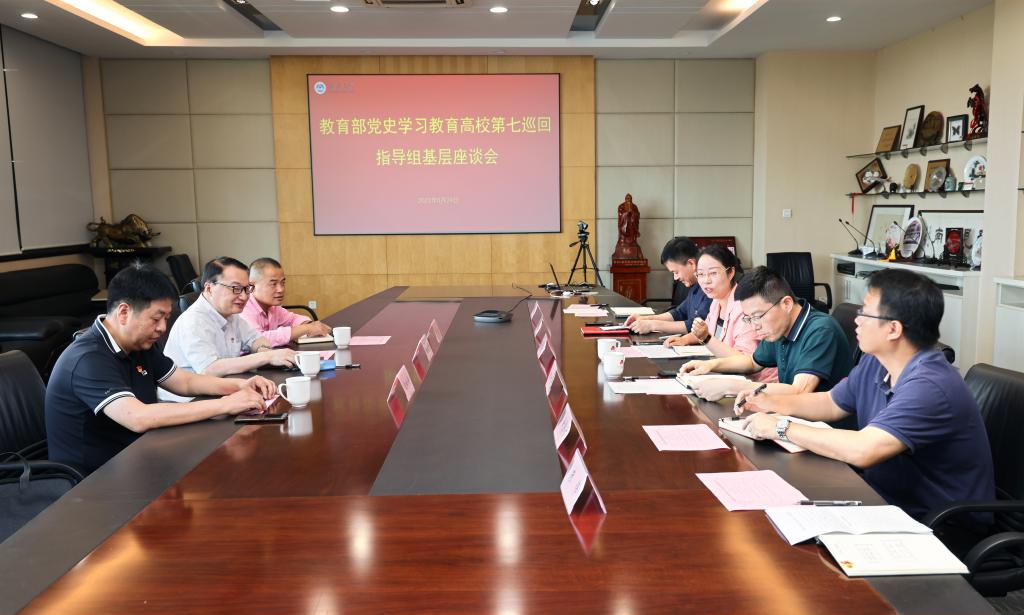 6月24日,教育部党史学习教育高校第七巡回指导组副组长徐建平、张毅莅临澳门电子pg游戏官网召开座谈会,会议由校党委常委、宣传部部长倪松涛主持。