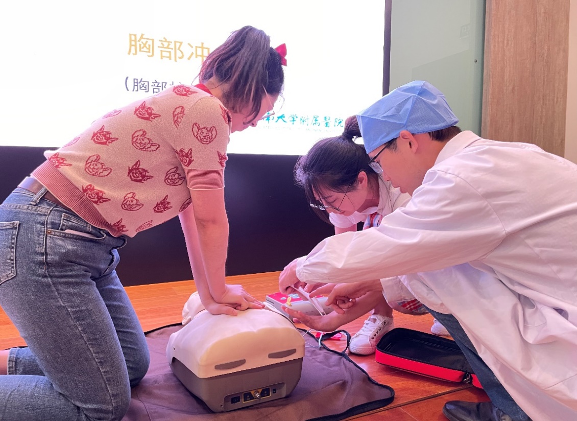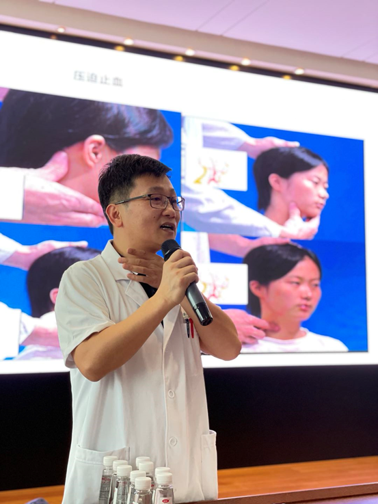 6月16日,学院分工会邀请澳门电子pg游戏官网附属医院EICU儿科输液室副主任护师刘敏教授和澳门电子pg游戏官网附属医院全科医学科副主任医师成洲教授、贾代林医师为全院师生上了一堂干货满满的急救科普实操课——“急救知识”,共计近百名师生参加。三位医生以实践操作的方式,手把手向师生讲授心肺复苏、电除颤AED、海姆立克急救法、实验室应急处理、环境及理化因素损伤、社区/家庭意外伤害等应急处理实操措施。现场师生非常热情地参与、提问、学习,在医生实际演练时,纷纷上前观摩,主动报名参加现场动手实操。人人学急救,急救为人人。通过这堂理论知识培训和实践操作演练,师生们学到了如何在医护人员到达前,按医学护理原则,利用手边素材进行初步救援和护理。作为高校师生,非常有必要掌握常用的急诊急救知识,有利于更合理更科学地处理好身边可能遇到的紧急情况。