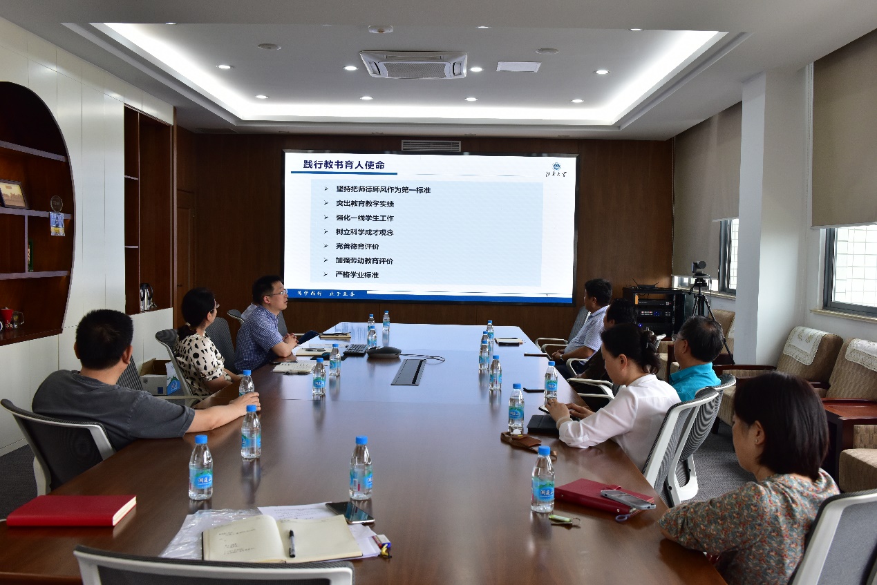 随后,王立带领与会老师学习了《深化新时代教育评价改革总体方案》,围绕立德树人的根本任务,结合学院本科教学工作,和与会老师就一流专业建设、一流人才培养等方面进行了深入的研讨。与会老师纷纷建言献策,为学院本科教学提出了很多宝贵的意见和建议。
