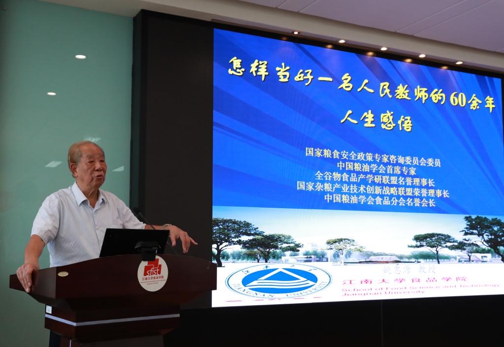澳门电子pg游戏官网首任院长、全国优秀教师姚惠源老师亲临开班仪式现场,他结合习近平总书记对教师的寄语,以“怎样当好一名人民教师”为题,分享了自己从教60余年的经历和体悟,他语重心长地说自己生在旧社会、长在新中国,“社会主义事业的责任感”是一辈子不论在“顺境”或“逆境”下艰苦创业、奋发前进的原动力,作为高校教师要一切从学生出发,在课堂教学中将传授知识和传递价值有机统一,科学研究中深入基层、着眼问题“接地气”,深耕精作、求真务实,用心托举和传承中国食品强国梦。