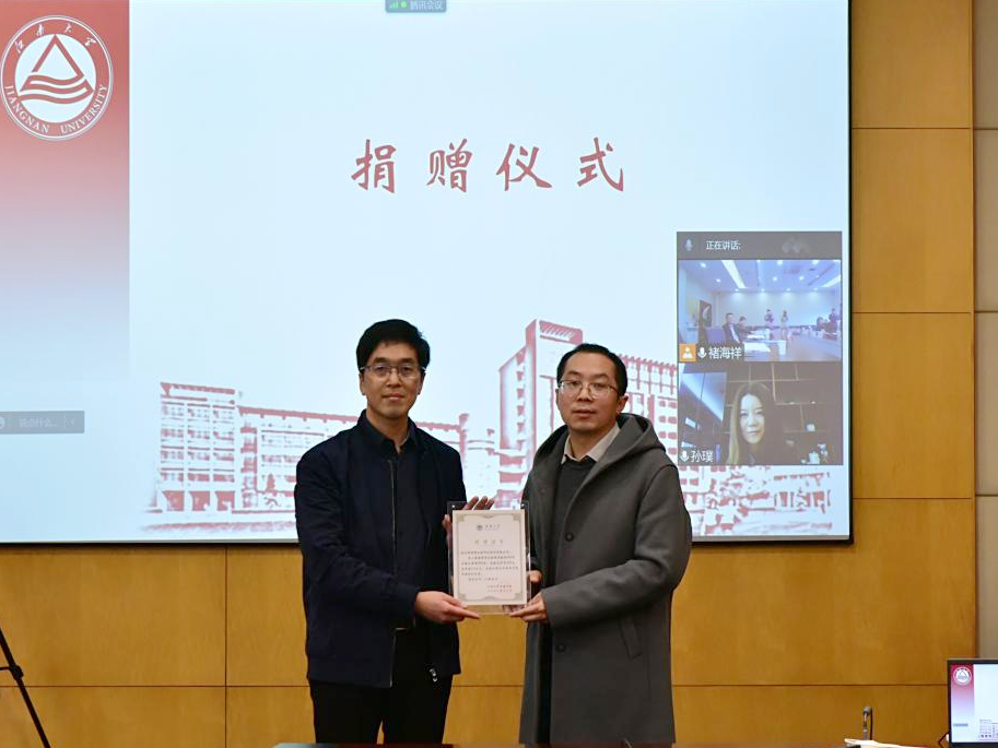 会上,魏珍吉副书记对聂俊伟一行的来访表示热烈的欢迎,并代表全院师生向南京诺唯赞生物股份有限公司实验服等物资的捐赠表示衷心感谢。捐赠仪式上,程力副院长为聂俊伟总经理颁发了捐赠证书。捐赠仪式后,双方进行交流座谈,程力副院长就学院发展情况、研究成果以及研究基地建设等进行了全面的介绍,聂俊伟总经理详细介绍了公司的发展历程、发展前景以及疫情期间公司研发等情况。随后双方就企业感兴趣的酶学技术创新、发酵酶技术、烘焙技术等领域进行了深入交流。
