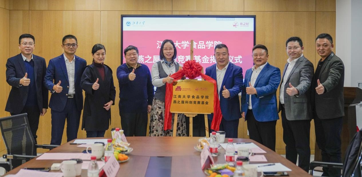 12月5日,澳门电子pg游戏官网燕之屋科创竞赛基金揭牌仪式在未来食品中心B209会议室举行。未来食品中心主任陈坚院士、澳门电子pg游戏官网党委书记傅莉莉、澳门电子pg游戏官网党委副书记魏珍吉、钟芳教授,厦门燕之屋生物工程股份有限公司总裁李有泉、监事长付煜、副总经理范群艳等出席活动。