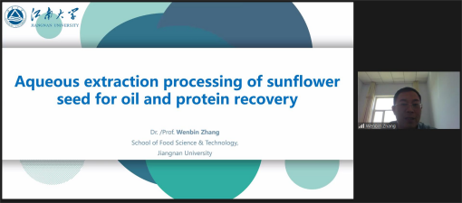 本次专题研讨会为澳门电子pg游戏官网-新西兰梅西大学食品科学与技术方向首次双边线上学术交流活动。本次研讨会围绕食品科学与技术多个研究方向展开,梅西大学食品与先进技术学院Richard Archer教授首先作题为“Rapid Continuous Freezing of Liquid Foods”的学术报告,随后Lovedeep Kaur高级研究员和Zhi Yang讲师分别作题为“Understanding the relationship between meat structure, processing and digestion”和“Probing the microstructures of food biopolymers using advanced scattering methods”的学术报告。接下来,澳门电子pg游戏官网张文斌教授、郑召君副研究员、杨巍副教授分别以“Aqueous extraction processing of sunflower seed for oil and protein recovery”,“Osteogenic effects of Calcium-binding peptides”和“Enzymatic Acylation of Anthocyanin from Berries”为主题进行学术报告,介绍了各自的研究成果。报告引起了与会师生的浓厚兴趣,双方就相关研究细节和应用展开了积极讨论与互动。