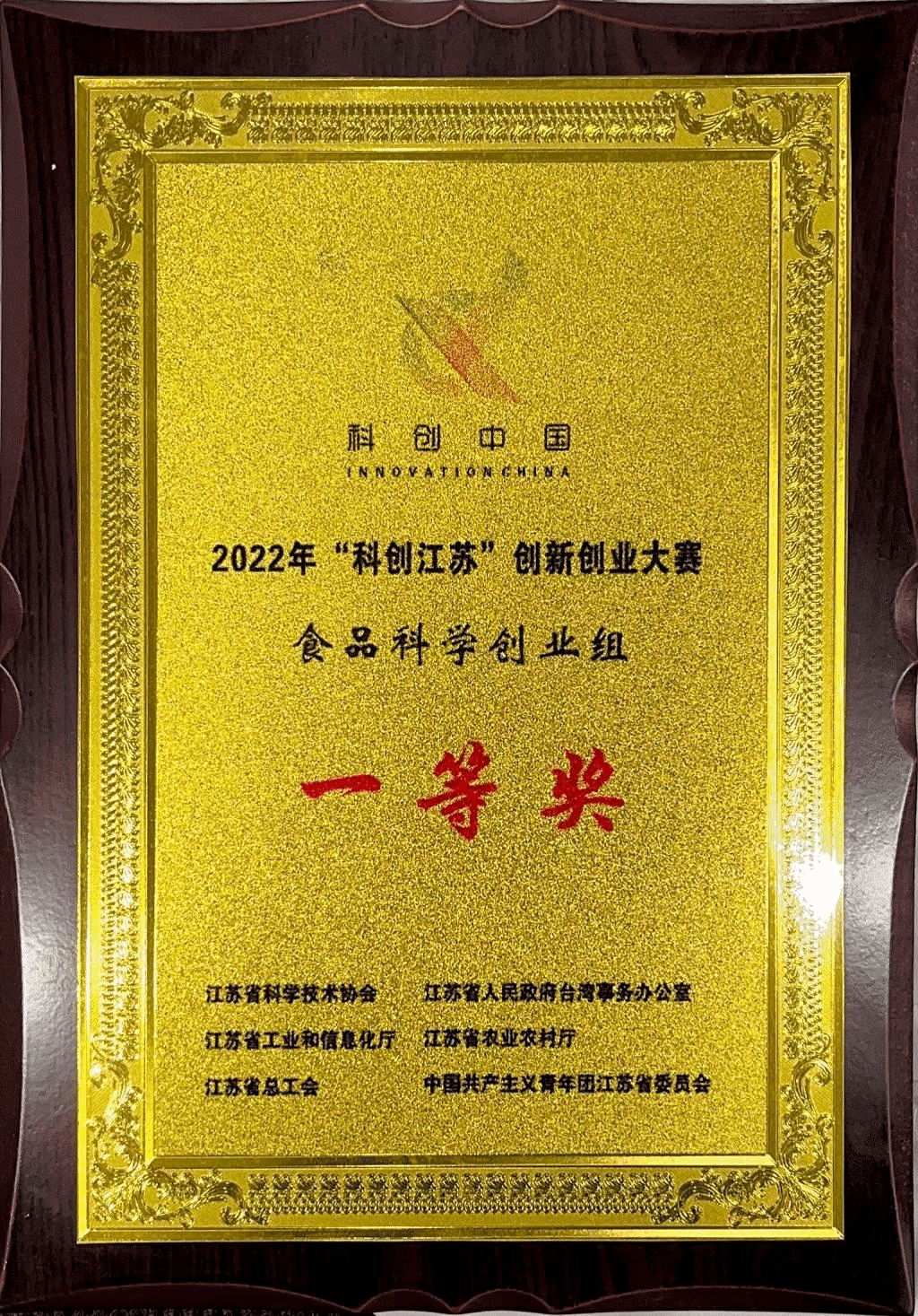 2022年12月,由江苏省科协、省台办、省工信厅、省农业农村厅、省总工会、团省委主办,省学会服务中心、泰州市科协、江苏省食品科学与技术学会、兴化市人民政府共同承办,兴化市科协、江苏省兴化经济开发区管委会协办的“科创江苏”创新创业大赛食品科学领域决赛在线上举行。澳门电子pg游戏官网参赛项目通过层层选拔,从众多项目中脱颖而出,在团队辛勤的付出和程力老师的指导下,“醛源革命——真无醛、高性能、可再生木材胶引领者”项目荣获食品科学创业组一等奖。