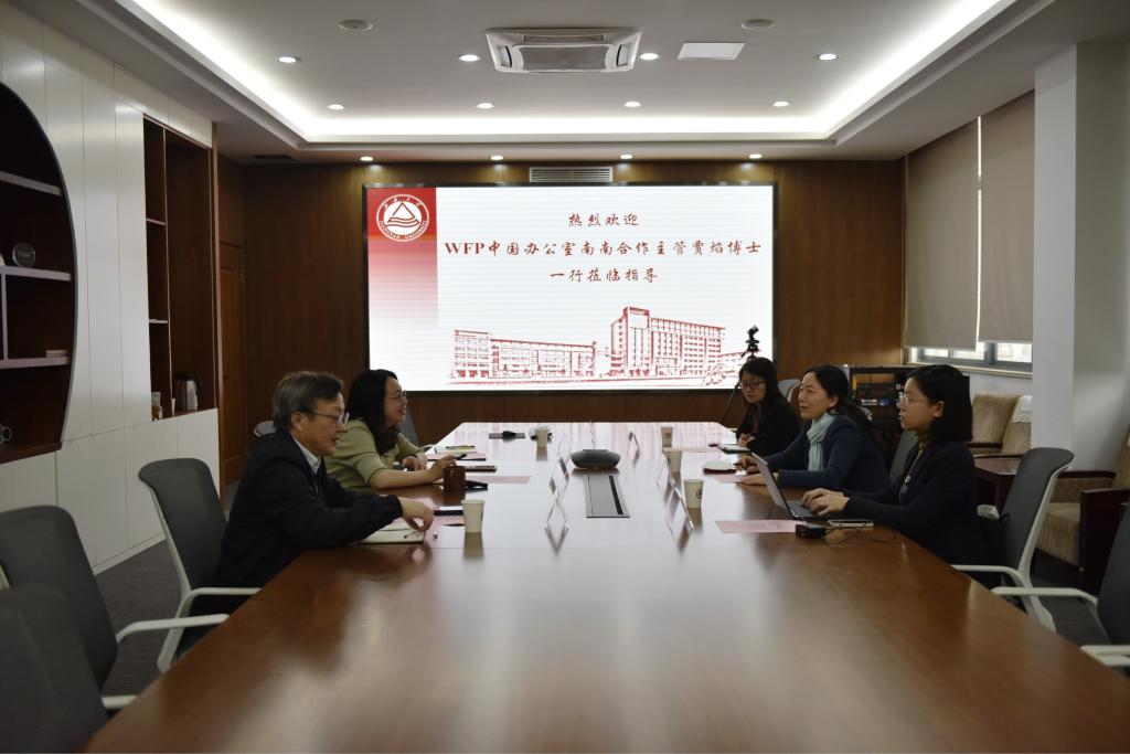 4月13日,联合国世界粮食计划署(WFP)中国办公室南南合作主管贾焰博士、南南合作主管助理张刘柳、布勒中国OBOR销售支持胡忠媛一行来访澳门电子pg游戏官网,并在D925会议室开展座谈交流。澳门电子pg游戏官网副院长谢云飞教授、陈正行教授、国际交流秘书蒋敏参加此次座谈交流。