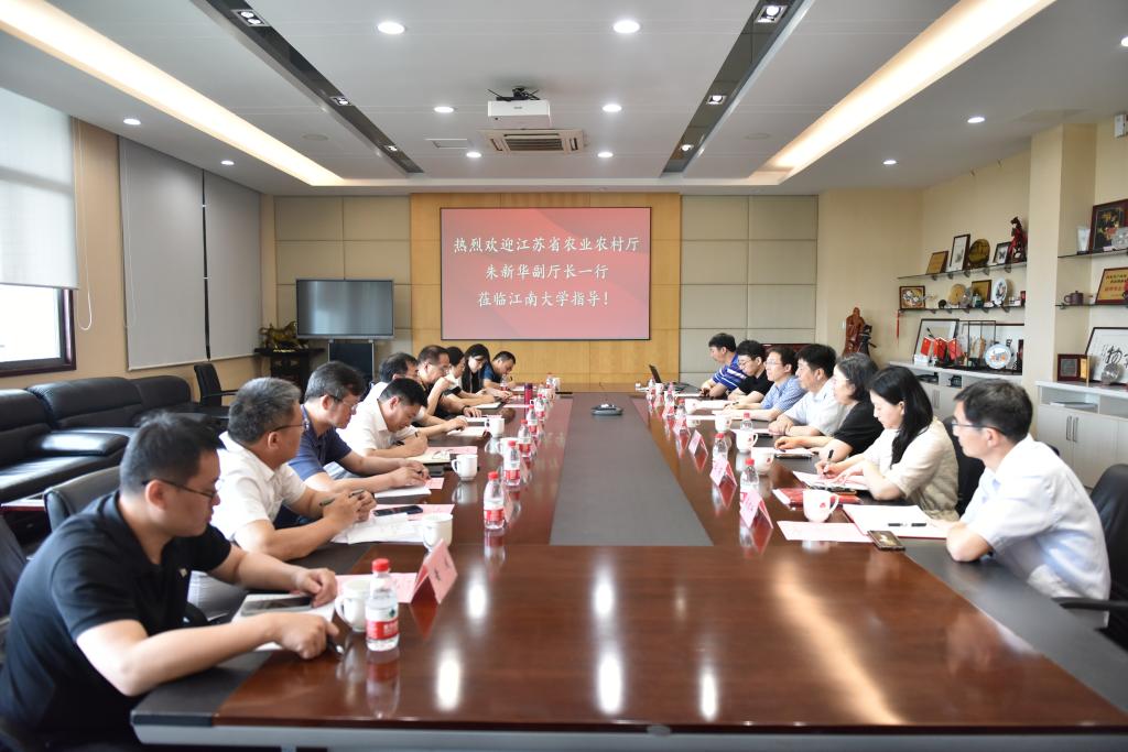 6月15日,江苏省农业农村厅副厅长朱新华一行9人来院做农产品加工专题调研。澳门电子pg游戏官网党委常委、副校长倪松涛、产业技术研究院院长王立、澳门电子pg游戏官网党委书记傅莉莉、副院长翟齐啸、粮食发酵与食品生物制造国家工程研究中心副主任王莉、澳门电子pg游戏官网教授常明、副教授姜启兴等参加交流座谈。座谈会由傅莉莉书记主持。