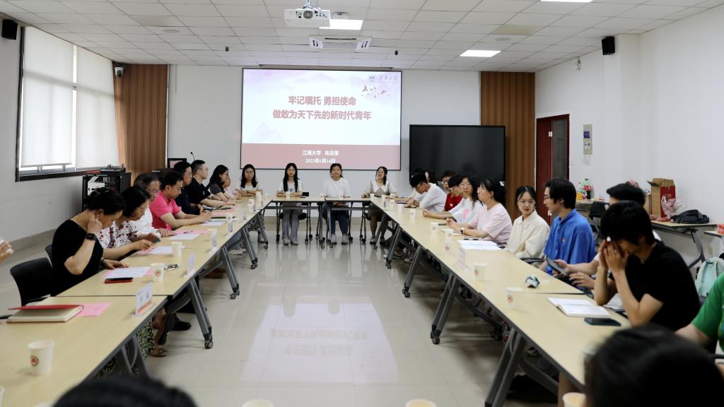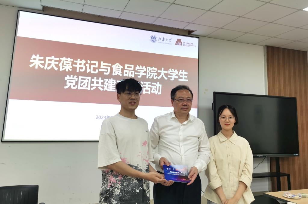 朱庆葆首先为毕业生党团员讲授《牢记嘱托,勇担使命,做敢为天下先的新时代青年》主题党课。朱书记带领大家一起学习了习近平总书记对毕业生的殷切嘱托,重点围绕成长成为有理想、敢担当、能吃苦、肯奋斗的新时代好青年开展论述。接下来,朱书记分析了新时代赋予青年的职责与使命,勉励同学们成为推动中国式现代化实现的内生动力,成为实现科技自立自强的战略支撑,成为迎接各种风险挑战的砥柱中流,成为实现中华民族伟大复兴的先锋力量。最后,朱书记深情寄语毕业生同学,秉持“敢为天下先”的江南食品精神,在矢志爱国上敢于争先,在勇担使命中敢于抢先,在勤勉实干中敢于为先,坚守理想信念,树立远大抱负,保持终身学习,开启人生新的华彩篇章。