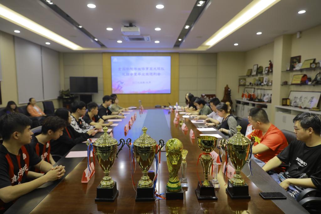 6月19日下午,澳门电子pg游戏官网学生五大球队春季学期总结会暨毕业生球员欢送会在D910会议室举行。党委副书记、副院长李雷,分团委副书记李琳,体育专项辅导员李金杰,五大球队队长、经理人、毕业生球员及学生会文体部负责人出席活动。