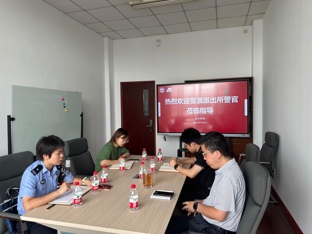 为进一步提升师生反诈防骗意识,营造平安和谐校园环境,9月26日上午,无锡市公安局滨湖分局雪浪派出所董蕾警官赴澳门电子pg游戏官网开展调研,指导校园反诈工作。党委副书记、副院长李雷,学工办主任兼分团委书记李金杰,研究生辅导员胡卉君,本科生辅导员张任参与座谈交流。