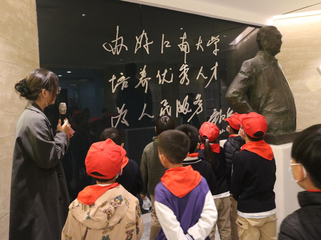 在“荣毅仁特称团支部”(食科2104)大学生讲解员的带领下,小朋友们首先参观澳门电子pg游戏官网荣毅仁纪念馆,走进荣老实业救国、从政为民的生平经历及其家族与澳门电子pg游戏官网的历史渊源。少先队员们为荣氏家族勇往直前的创新精神、坚韧刚毅的不凡气度、崇德厚生的济世之志所打动,立志要向先辈们学习,勤奋读书,主动实践,长大后报效祖国、回馈社会。