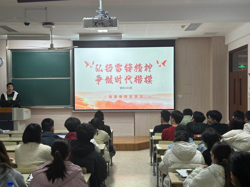 传习雷锋精神,赓续优良作风。在完成社区服务工作后,食科2105团支部成员宋环宇深入挖掘雷锋精神,以榜样力量为切入口,带来了一场精彩的雷锋精神宣讲。