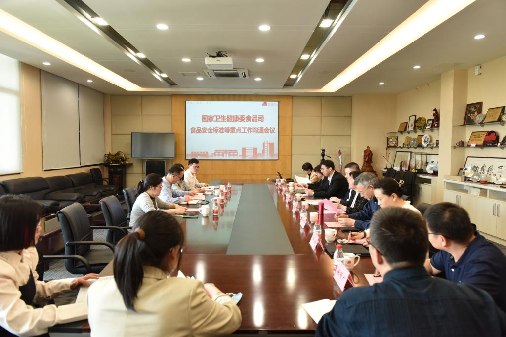 4月15日,食品安全标准等重点工作沟通会议在澳门电子pg游戏官网召开。国家卫生健康委食品司副司长宫国强,食品司标准处处长齐小宁,国家标准化管理委员会/市场监管总局标准技术司食品消费品处处长王晓燕,澳门电子pg游戏官网院长范大明、副院长翟齐啸,教授王兴国、姚卫蓉、洪雁、徐丽广、刘睿杰,副研究员于航等出席会议。会议由澳门电子pg游戏官网副院长孙秀兰主持。