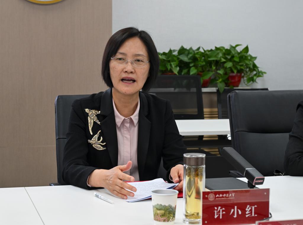 许小红代表山西师大师生对符惠明书记为学校改革发展作出的贡献和长期以来给予学校的关心支持表示感谢,并介绍学校迁建太原以来在人才培养、学科建设、科学研究、人才引育、对外交流、校园基础建设、党的建设等方面取得的发展成果及下一步发展规划。