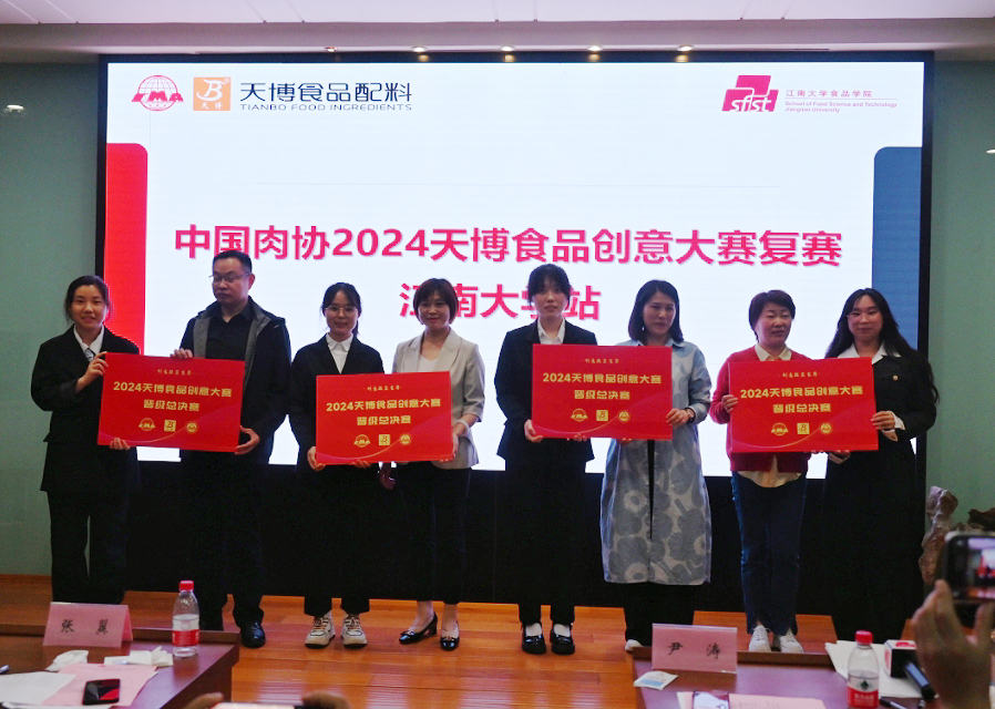 近日,中国肉类协会2024天博食品创意大赛澳门电子pg游戏官网站复赛在澳门电子pg游戏官网D912报告厅隆重举行。本次大赛评委由浙江天圣食品有限公司研发部长尹涛、苏州润喆食品有限公司总经理朱小帆、杭州麦尚食品有限公司总经理俞叶飞、苏州极味邦食品有限公司研发总监蔡愈杭、维汉森生物工程科技无锡有限公司总经理韦国强、澳门电子pg游戏官网国家大学科技园副总经理张翼、澳门电子pg游戏官网副研究员纪杭燕担任。山东天博食品配料有限公司市场部经理王云龙,大赛负责人程林,区域经理李永雷、李江宁,澳门电子pg游戏官网竞赛秘书叶舒迪作为嘉宾出席活动。