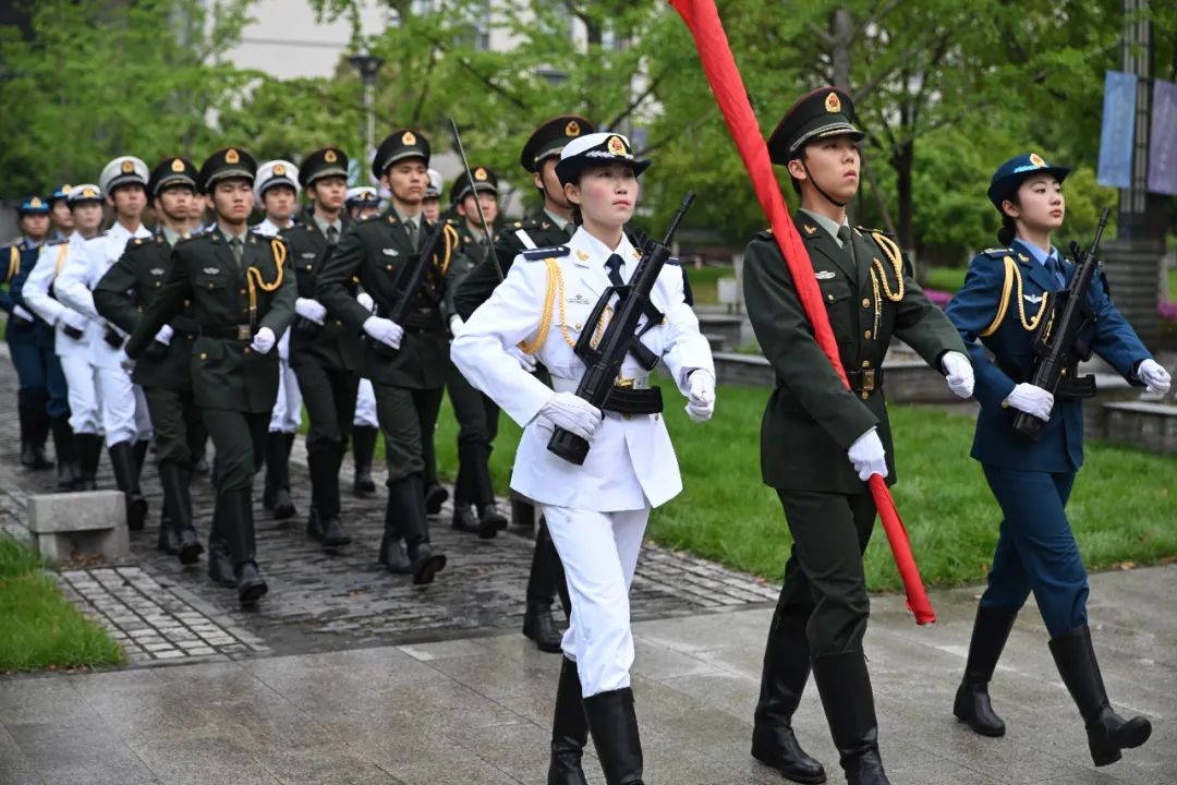 清晨7时,澳门电子pg游戏官网国旗护卫队队员们迈着整齐划一、铿锵有力的步伐,护送五星红旗正步走向旗杆。伴随着激昂的国歌响起,全体师生齐唱国歌,目送五星红旗冉冉升起,在熠熠晨光中迎风飘扬。