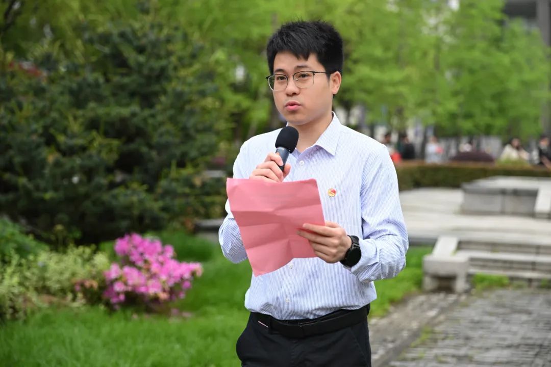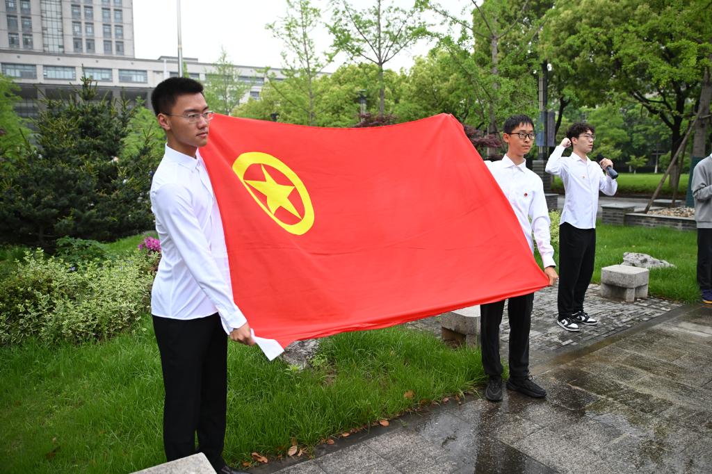 升旗仪式结束后,团务中心督查委员赵洪伟带领全体团员青年重温入团誓词,面向团旗,举起右手,庄严宣誓:“我志愿加入中国共产主义青年团,坚决拥护中国共产党的领导,遵守团的章程,执行团的决议,履行团员义务,严守团的纪律,勤奋学习,积极工作,吃苦在前,享受在后,为共产主义事业而奋斗。”铿锵有力的誓言,让团员青年们共同回顾和感悟入团初心与使命。