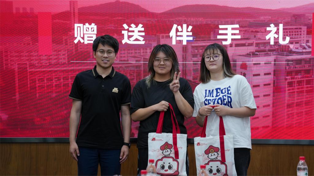 倾情定制,佳礼相赠。李金杰、曹敏、张任分别向同学们赠送学院文创大礼包,希望大家可以铭记在澳门电子pg游戏官网的美好时光,未来取得更大的进步。