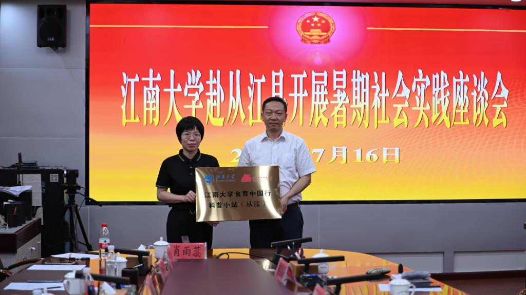 讨论交流环节之后,陈艳君代表学校向从江县颁授“澳门电子pg游戏官网食育中国行科普小站”铭牌;李雷代表学院向从江县颁授“澳门电子pg游戏官网实践育人校外基地”铭牌。此次授牌,为进一步巩固校地合作夯实了基础,也为食品师生在黔东南地区长期有效开展食育科普实践活动按下了加速键。