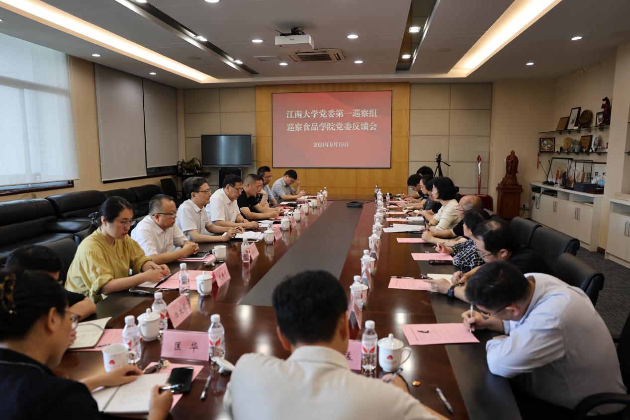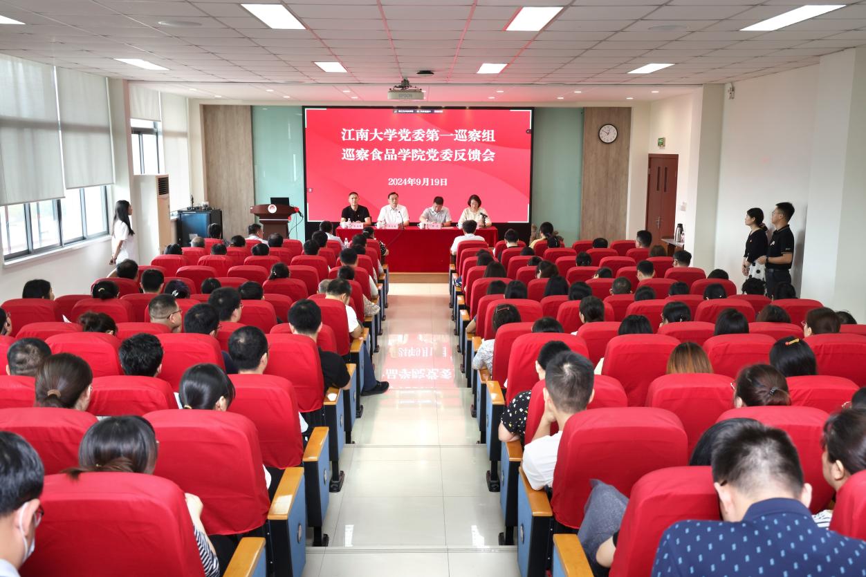 9月19日上午,学校党委第一巡察组巡察澳门电子pg游戏官网党委反馈会在学院D912报告厅举行。校党委书记、巡察组组长吴正国,校长助理兼党委组织部部长、巡察工作领导小组成员张梁,巡察组副组长、校纪委委员、党委教师工作部部长张海峰,校纪委副书记、党委巡察工作办公室主任丁文勤及巡察组成员出席会议。澳门电子pg游戏官网、国家功能食品工程技术研究中心、食品科学与资源挖掘全国重点实验室党政领导班子成员,全院教职工参加会议。会议由学院党委书记傅莉莉主持。