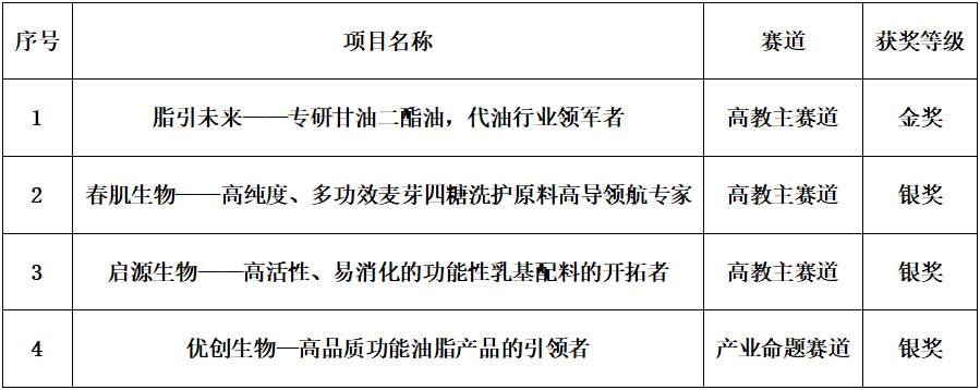 经过紧张激烈的现场角逐,澳门电子pg游戏官网食品学子以优异的表现斩获国赛金奖1项、银奖3项。其中,高教主赛道本科生创意组《脂引未来——专研甘油二酯油,代油行业领军者》荣获金奖;高教主赛道本科生创意组《春肌生物——高纯度、多功效麦芽四糖洗护原料高导领航专家》、高教主赛道研究生创意组《启源生物——高活性、易消化的功能性乳基配料的开拓者》、产业命题赛道产教协同创新组《优创生物—高品质功能油脂产品的引领者》等3个项目荣获银奖。