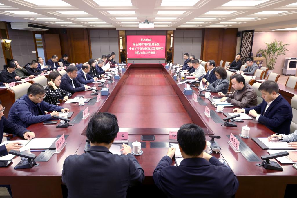 11月4日上午,国家教育行政学院第五期教育部直属系统中青年干部培训班江苏调研团来校调研。校党委书记吴正国,校党委常委、副校长张影陆接待调研团,党委办公室、校长办公室、科学技术研究院、产业技术研究院、社会科学处等部门负责人参加座谈会。会议由校长助理、党委组织部部长张梁主持。