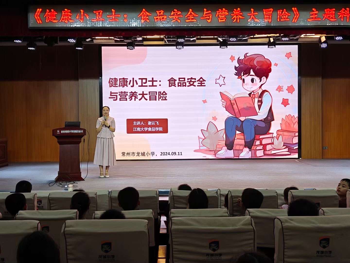 9月11日,澳门电子pg游戏官网教授谢云飞走进常州市龙城小学,以《健康小卫士:食品安全与营养大冒险》为主题,为小学生们带来一场生动的科普讲座。谢云飞以贴近生活的食品安全事件为切入点,生动有趣地强化学生们对食品安全的认识,为他们树立正确、健康的饮食观念。
