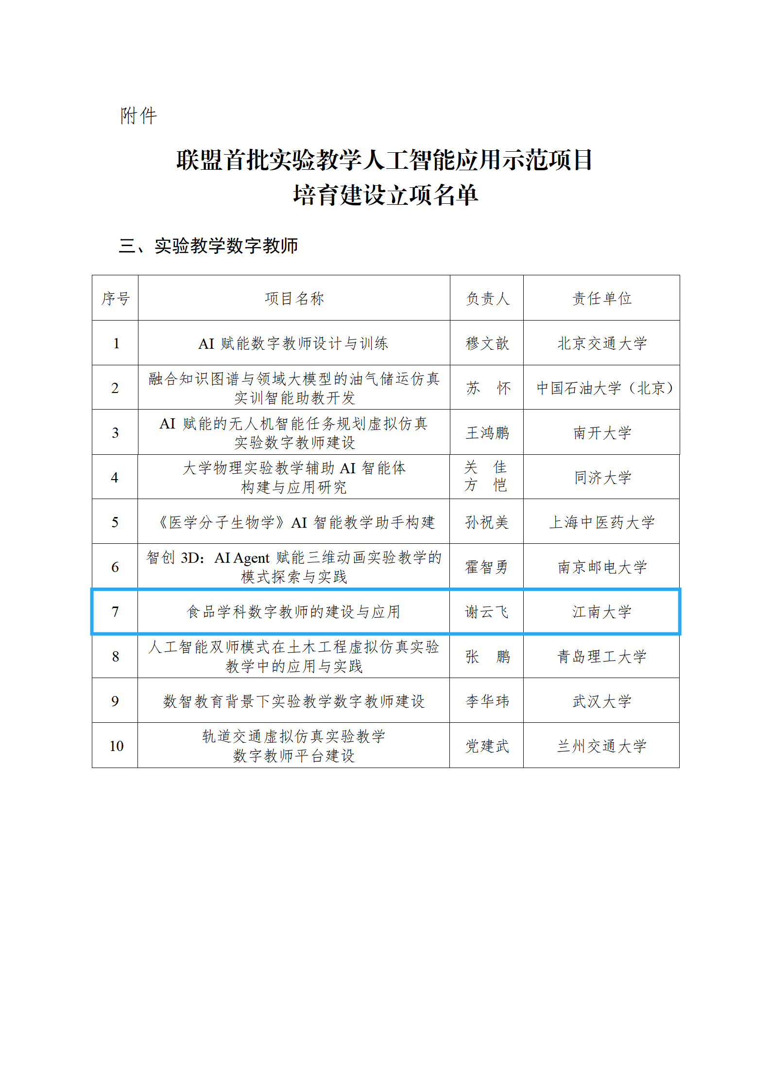 近日,虚拟仿真实验教学创新联盟正式公布首批实验教学人工智能应用示范项目培育建设立项名单。经过严格的评审与筛选,全国共有35所高校项目脱颖而出。澳门电子pg游戏官网谢云飞教授负责的“食品学科数字教师的建设与应用”获批立项,这标志着我院在实验教学领域的人工智能应用探索上迈出了重要一步,为提升实验教学的质量和水平注入了新的活力。