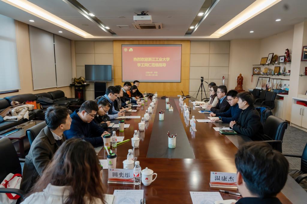 12月18日,浙江工业大学药学院、绿色制药协同创新中心党委副书记乔婧芳、食品科学与工程学院党委委员王璇等一行11人来访澳门电子官网。澳门电子官网澳门电子pg游戏官网党委副书记兼副院长李雷、生命科学与健康工程学院党委副书记兼副院长孙颖及相关辅导员接待来访。