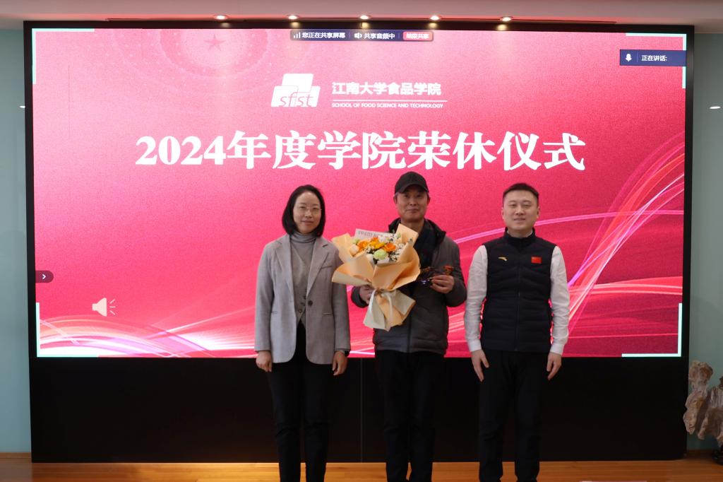 随后举行2024年退休教师荣休仪式。仪式上,退休教师代表谢正军发表感言。他回顾自己在学院度过的美好时光,表达了对学院发展的自豪和欣慰。他表示,虽然即将离开工作岗位,但将一如既往关心和支持学院发展,贡献智慧和力量。