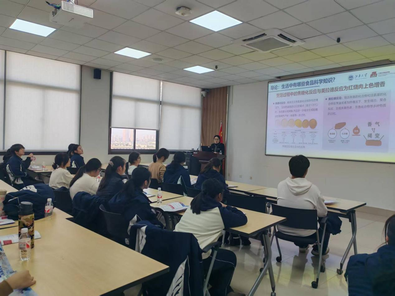 活动伊始,学院负责招生工作的教师高雅慧为同学们带来了一场别开生面的科普讲座。她以生动有趣的食品案例切入,深入浅出地讲解食品科学知识,激发同学们探索食品奥秘的兴趣。随后,学院优秀学子余俊文与同学们分享了他的大学生活和学习经验,为同学们点燃大学梦想。