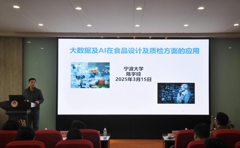 陈宇综为师生们作题为“大数据及AI在食品设计及质检方面的应用”的报告。报告伊始,陈宇综便点明食品与AI结合是大势所趋。随着现代食品技术迅猛发展,从基础营养研究到产品开发、制造,再到品质检测,各环节积累海量复杂数据,传统方法难以为继,AI的介入恰逢其时,为行业突破瓶颈注入强劲动力。在应用案例分享环节,陈宇综如数家珍。他提到利用AI分析食品光谱数据能精准识别食品成分、检测品质,即便是复杂食品的光谱分析,凭借AI算法也能轻松破解,大大提升检测效率与准确性。中药配方优化同样是AI大显身手的领域,新冠疫情期间,其团队借助AI技术剖析“三药三方”,挖掘关键成分及作用靶点,为中医药现代化提供了新思路。展望未来,食品AI技术潜力巨大。实物识别可从基础营养识别迈向功效成分定量分析,为不同人群定制专属膳食方案;多模态光谱技术融合将使食品鉴定、推荐系统更智能;食品安全检测借助先进技术也能更高效、精准。陈宇综强调,构建国家级食品数据系统、整合前沿AI算法迫在眉睫,这将助力我国在全球食品科技领域抢占先机。他对年轻一代寄予厚望,指出这正是创新思维最为活跃的年龄段,并以多位知名科学家和企业家为例,鼓励同学们勇立潮头跨学科领域深耕,为国家发展贡献力量。
