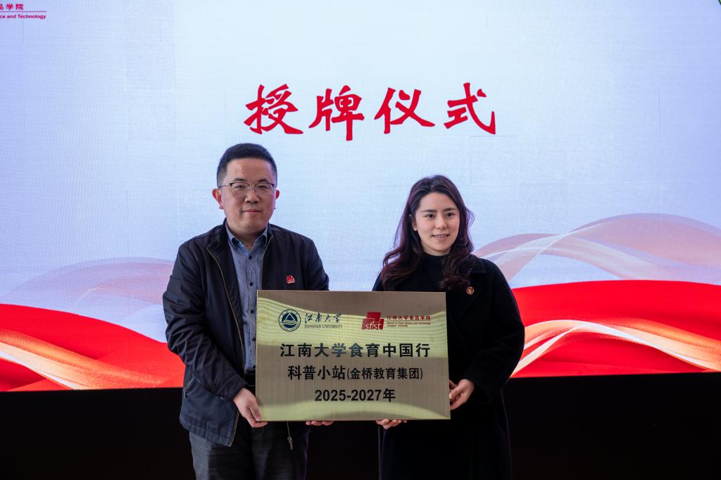 随后,马翀代表金桥教育集团向澳门电子pg游戏官网赠送“向往”雕塑。李雷向金桥教育集团健康管理中心颁授“食育中国行·科普小站”铭牌。