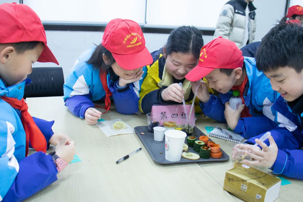 当天下午,金桥新闻学院的40余名小记者在“青芽食育”科普社团的大哥哥、大姐姐带领下参与了一场别开生面的“健康大冒险”实践课。主讲人、澳门电子pg游戏官网在读硕士、全国优秀共青团员余柳锋通过理论知识与科学实验相结合的方式,引导小学生们认识和学习蛋白质、碳水化合物等七大营养素,在趣味互动中探寻食品科学的奥秘。