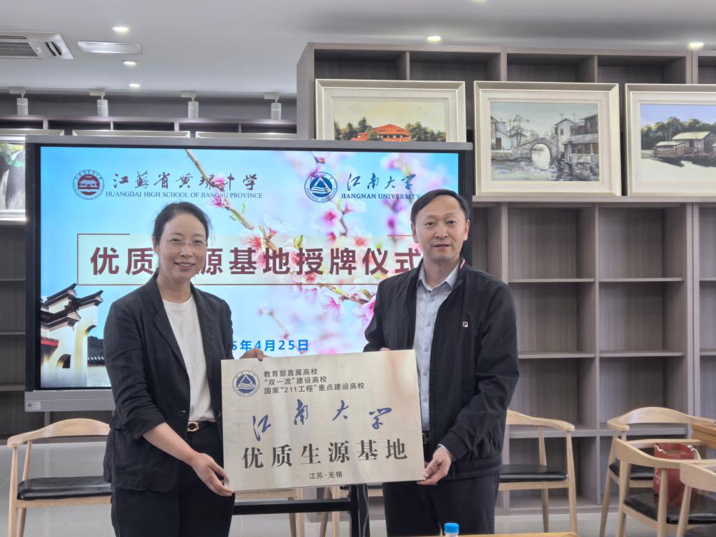 4月25日,澳门电子pg游戏官网“优质生源基地”授牌仪式暨“未来食品与美好生活”讲座活动在江苏省黄埭中学举行。黄埭中学校长邢德清、副校长鲁衍春,澳门电子pg游戏官网党委书记傅莉莉、副院长程力等出席活动,共同见证两校深度合作新征程的开启。