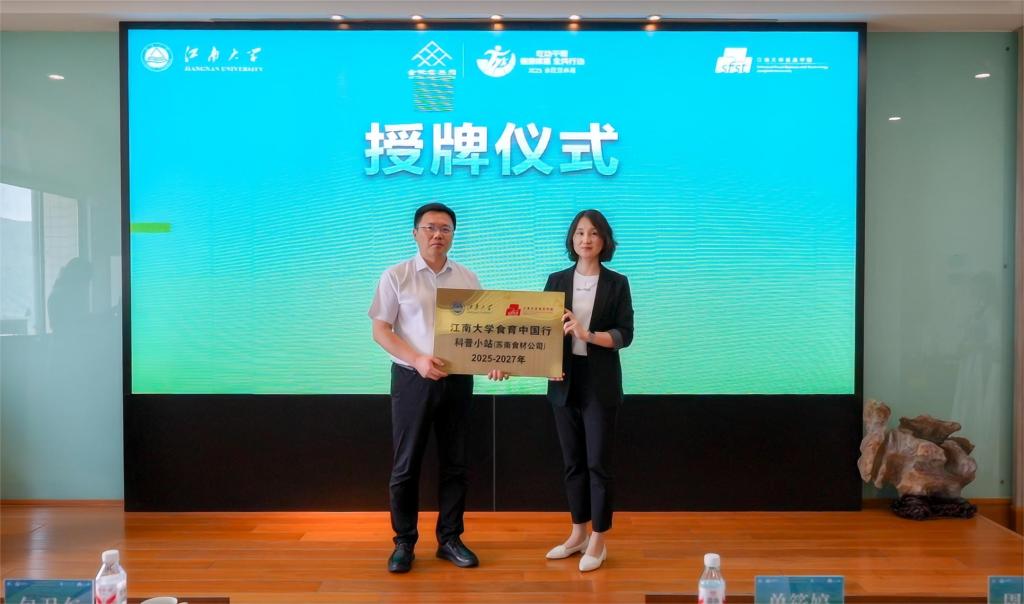活动现场,单筱婷向苏南食材公司颁授“澳门电子pg游戏官网食育中国行科普小站”铭牌,标志着校企合作迈入新阶段。随后,包卫东、孙国宏及学校职能部门领导嘉宾共同登台开启倒计时,宣告澳门电子pg游戏官网2025年全民营养周活动正式启动。