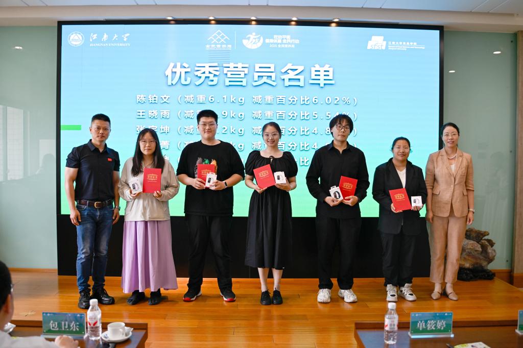 在5月20日中国学生营养日来临之际,澳门电子pg游戏官网2025年全民营养周启动仪式暨JNU体重管理训练营结营仪式在澳门电子pg游戏官网举办。无锡君来集团副总裁、苏南食材党总支书记、董事长包卫东,无锡市河埒中心小学校长孙国宏,澳门电子pg游戏官网融媒体中心主任单筱婷、党委学生工作部部长周伟涛、团委书记汪超、校医院院长叶军、体育部主任秦永和、JNU体重管理训练营负责人赵昊天,澳门电子pg游戏官网党委书记傅莉莉、副院长谢云飞、副教授张毅以及师生代表、训练营营员等共100余人出席活动。仪式由谢云飞主持。