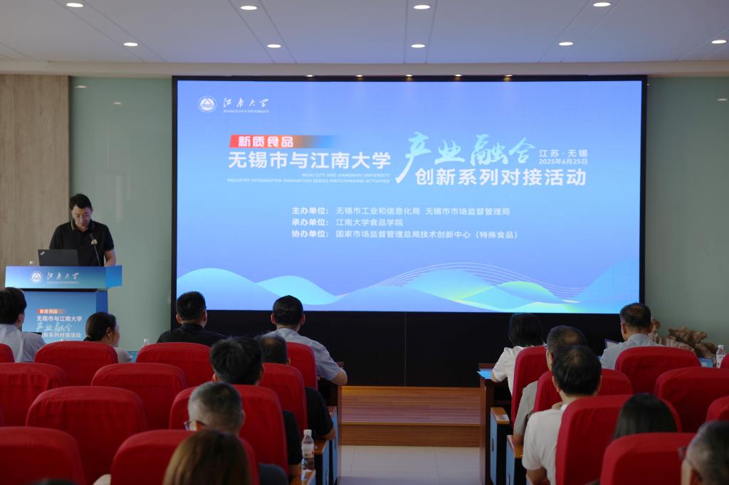 为深化无锡市食品产业与高校科研资源融合,加速科技成果转化与产业升级,2025年6月25日,由无锡市工业和信息化局、无锡市市场监督管理局主办,澳门电子pg游戏官网承办的“无锡市与澳门电子pg游戏官网产业融合创新系列对接活动(新质食品)”在澳门电子pg游戏官网成功举办。活动聚焦新质食品领域,吸引政府、高校、科研机构及企业代表约80人共谋创新发展。