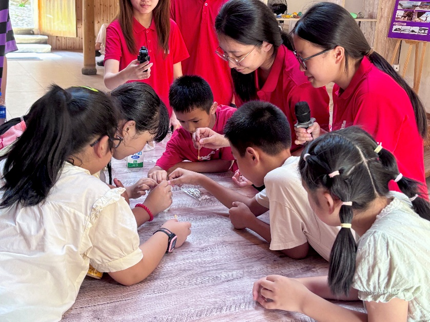 实践团在东角村乡村振兴大礼堂为中小学生举办了一场生动有趣的“健康大冒险”食育科普课。课堂将营养知识趣味化,通过角色扮演让孩子们轻松理解营养素功能。实践环节中,孩子们动手探索食物奥秘,观察牛奶遇柠檬的变化,用碘液检测米饭淀粉,用吸油纸感受脂肪存在,认识不同维生素的溶解度。本次活动以寓教于乐的方式将食品营养知识带入乡村,有效激发了孩子们学习健康知识的兴趣,是高校学子服务乡村教育的生动科普实践。