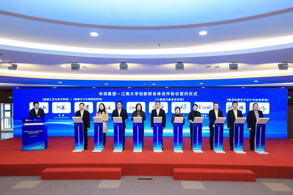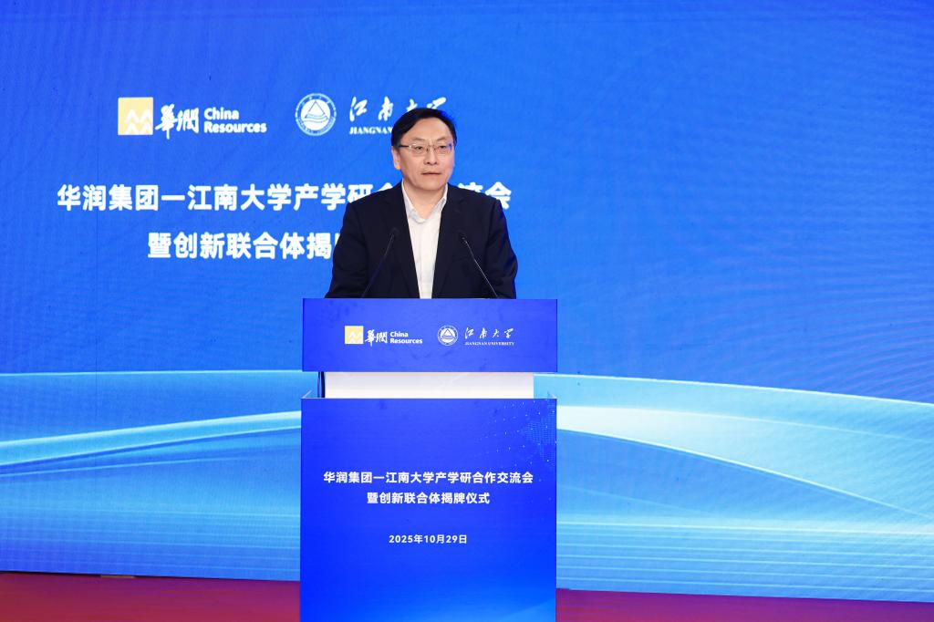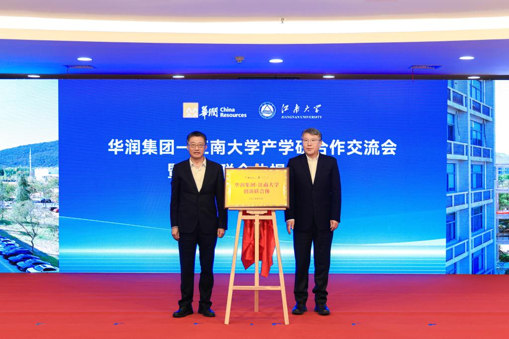 近日,“华润集团—澳门电子pg游戏官网创新联合体”在太湖之滨正式揭牌。华润集团总经理王崔军、人力资源部总经理杨坤、科技创新部总经理陈雷,华润医药董事会主席白晓松、华润创业董事长程洁、华润微电子董事长何小龙、华润啤酒总裁金汉权、华润五丰总经理刘明芳、华润双鹤总裁赵骞、江中药业总经理徐永前等共同出席活动。此次揭牌标志着校企双方历时近一年的战略对接迈入“实体化、平台化、一体化”新阶段,既是此前双方战略合作框架协议的快速落地,也是央企与“双一流”高校携手培育新质生产力的有力探索。