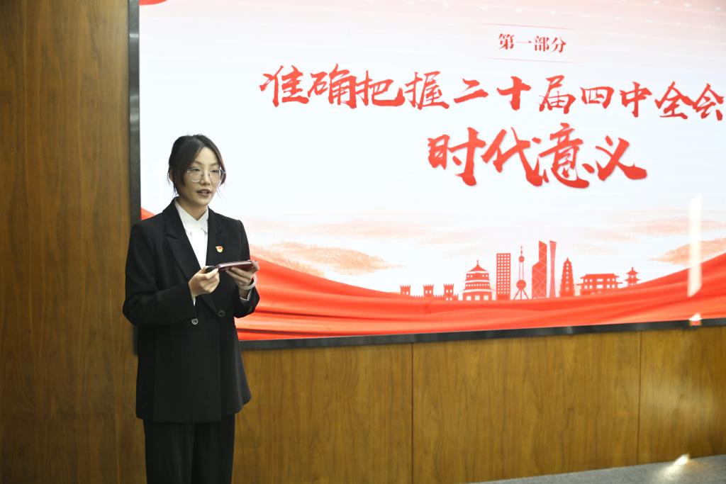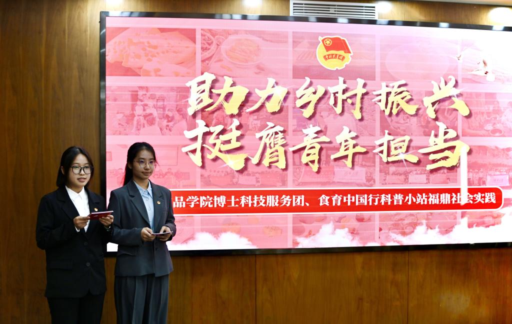 本科生第一党支部党员、食科2202班曾美怡同志以《深学全会精神 凝聚复兴伟力》为题领学党的二十届四中全会精神,食品AI卓越创新班2401团支部周书涵、李代静以《助力乡村振兴 挺膺青年担当》为题分享汇报青年学子投身乡村振兴的实践路径与青春感悟。