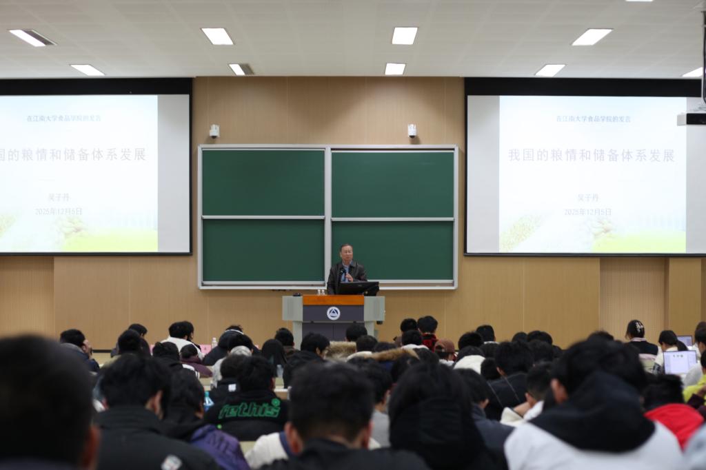 12月5日晚,澳门电子pg游戏官网《食品产业导论》课程迎来一场聚焦国家粮食安全的高层次讲座。本次课程特邀国家粮食局原副局长、国务院政府特贴专家、中国科协粮食储运与质量安全领域战略咨询团队首席专家吴子丹教授,为学子们作题为“我国的粮情和储备体系发展”的专题报告。