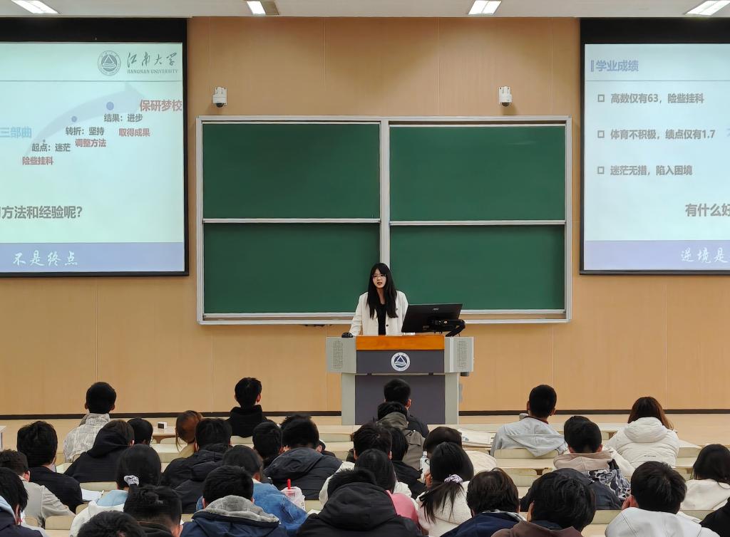“榜样的力量——朋辈引领”分享会上,学院邀请科研、升学、就业表现突出的优秀学长学姐传经送宝,分享实验室入门路径、升学备考方法、就业求职技巧,为新生提供可借鉴的成长经验。