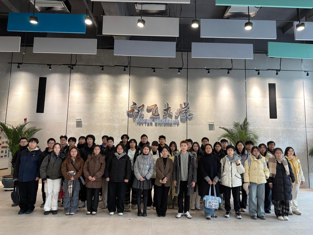 研学实践活动聚焦“食品科学+人工智能”融合发展,旨在为学生搭建一个近距离接触科大讯飞人工智能研发成果与前沿技术转化应用的实践平台。同学们首先参观了科大讯飞人工智能体验中心。中心内集中展示了各类人工智能产品,从食品成分智能检测设备到智能汽车语音交互系统,从智慧教育到医疗健康,从“讯飞晓医”到“讯飞星火”大模型,科大讯飞的人工智能技术已深度融入人类生产生活的方方面面,也让同学们对智能科技的现实应用与广泛价值有了更全面的理解。特别是在高等教育领域,科大讯飞通过智能作业批改、个性化学习反馈、虚拟实验平台等教学工具,为学生日常学习、科研训练与教学互动提供了有力支持,让同学们直观感受到人工智能技术如何与自身学业发展紧密结合,对“技术赋能教育、赋能产业”有了更切身的体会。