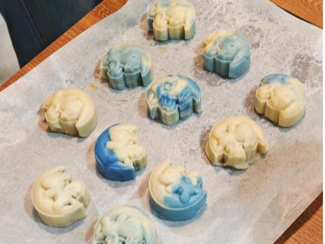 实践团在前期研究基础上,重点推进“山海风味月饼”的产业化落地工作,通过对原有配方进行多轮工艺优化与中试验证,最终形成了一套标准化的生产方案。我们精确量化了低糖配方中混合糖醇与益生元菊粉的替代比例,优化了白茶芋泥等特色口味的调和工艺,并系统完成了包含精确配比、标准化生产流程及详细成本核算的可行性报告,为当地特色月饼从实验室走向规模化生产提供了完整的技术路径与数据支撑。