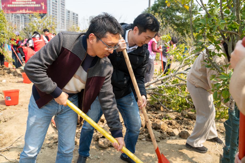 春风拂暖,万物复苏。在全国第48个植树节来临之际,澳门电子pg游戏官网师生以实际行动深入贯彻生态文明思想,牢固树立和践行绿水青山就是金山银山理念,营造“以树育人、以景润心”的校园氛围。3月12日,后勤管理处环境中心、澳门电子pg游戏官网、商学院携手举办“同心共添江南绿,劳动蕴蓄育人情”澳门电子pg游戏官网2026年植树节活动,后勤党委副书记、纪委书记曹沛,澳门电子pg游戏官网副书记兼副院长陈勇,澳门电子pg游戏官网全体辅导员,本科生第一、第二、第三党支部,营养2302、营养2402“雷锋”特称团支部、食品卓越创新班2401“荣毅仁”特称团支部的青年学子们共同参与活动。
