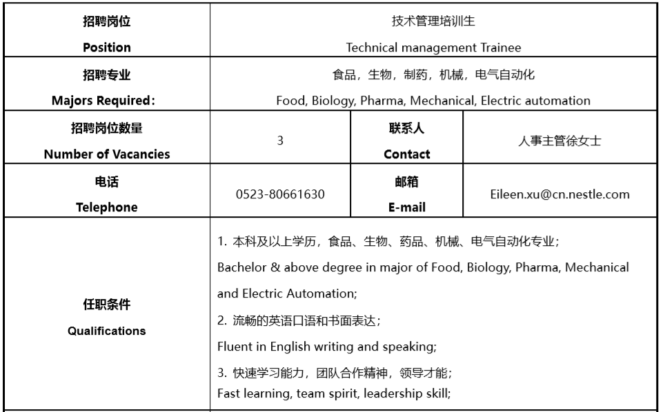 就业【2021】 57号 雀巢2021届校园招聘简章
