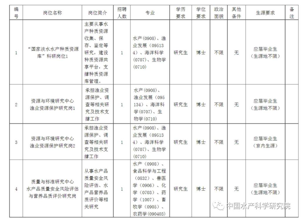 就业 【2023】 44号 中国水产科学研究院2023年度第二批公开招聘公告
